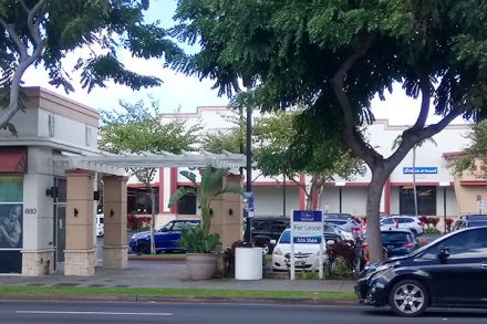 オーガニック系の食品が揃う、おしゃれなスーパー、セーフウェイの正面、ビタミンショップGNCの横が停留所。ロコに人気のマラサダで有名なレナーズは道を挟んだ反対側です。