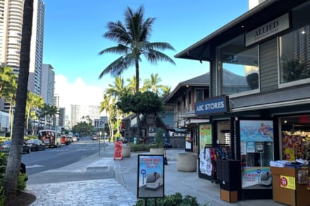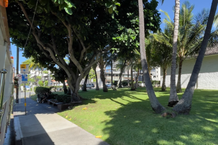 ツイン フィン ワイキキ(旧アストン・ワイキキ・ビーチ・ホテル)の出入口前、パオアカラニ通りに停留所があります。