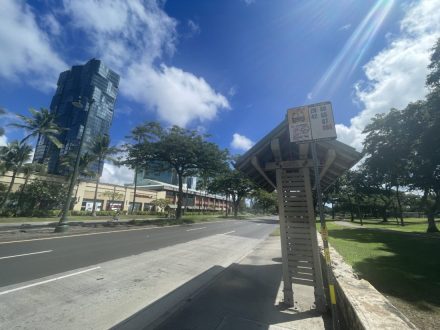 サインなし The Bus看板 #764停留所はアラモアナ大通りに面したThe Busの停留所です。